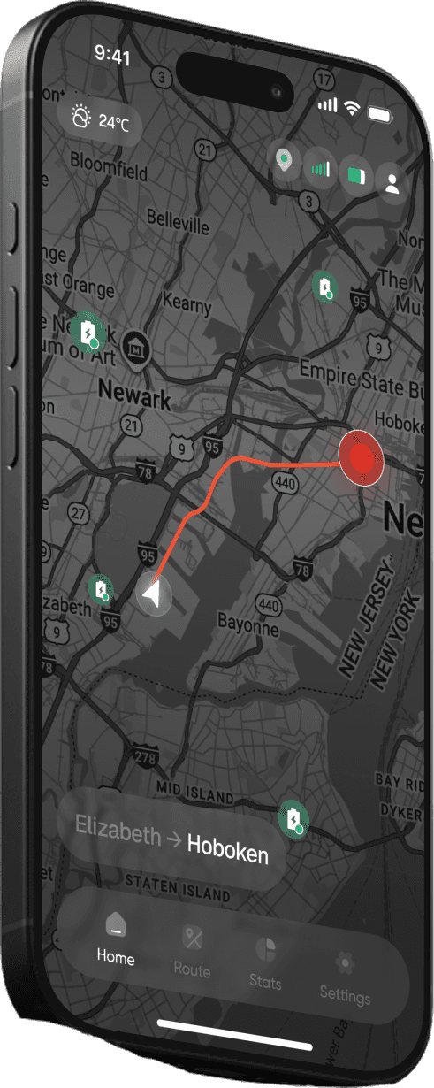 Begin driving and let SmartDrive do the rest. You’ll get live updates on weather, hazards, range, and nearby spots — all in one screen.